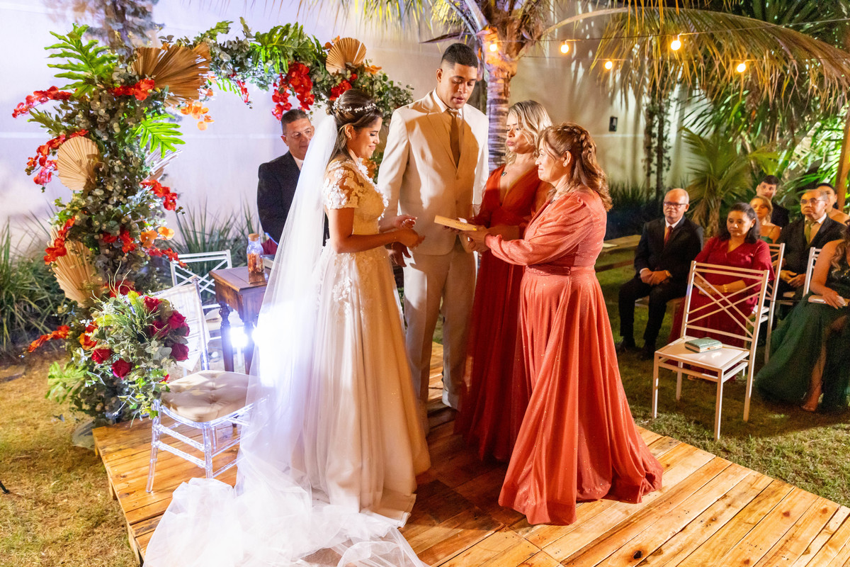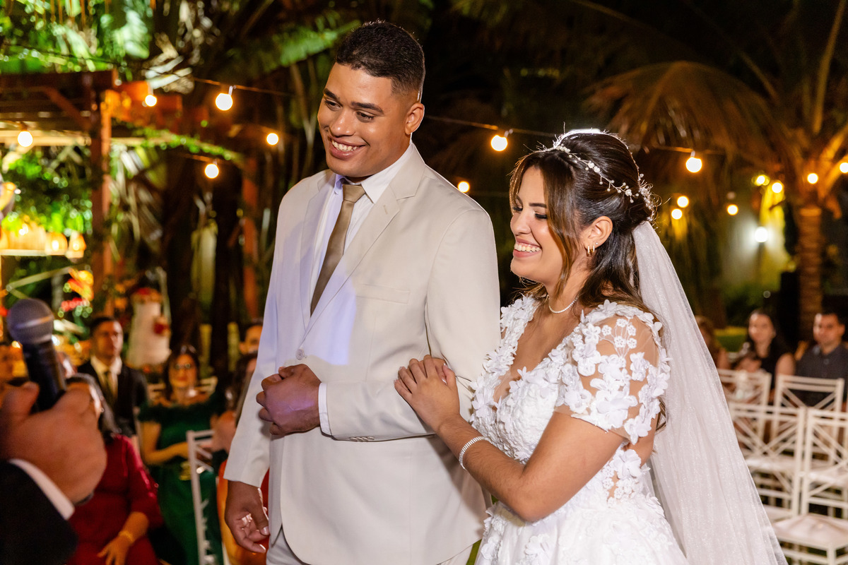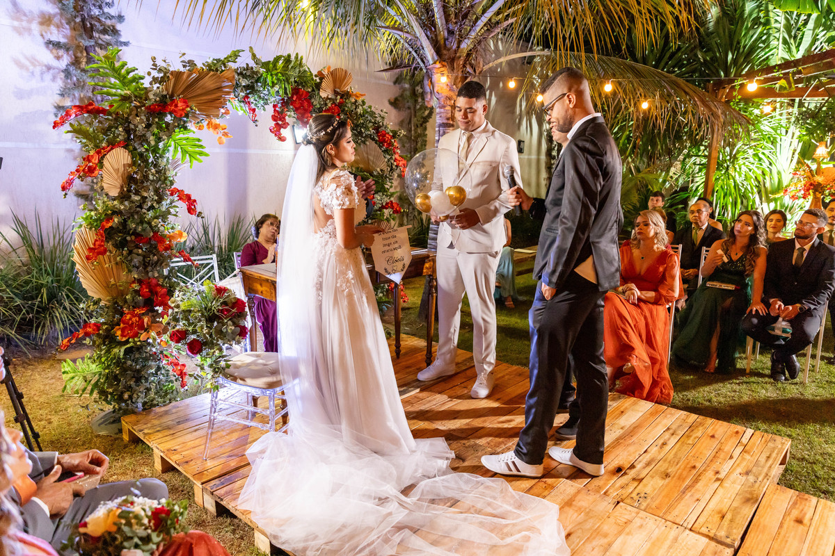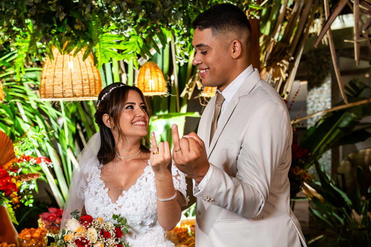 À noite, o cenário se transformou no palco perfeito para o "sim". A cerimônia aconteceu no belíssimo Espaço Colizeu, em Goiatuba, Goiás — um lugar que combinou perfeitamente com a energia do casal: elegante, acolhedor e repleto de luz. Sob um céu estrelado, cercados por familiares e amigos, eles celebraram o início de uma nova etapa com muita emoção, troca de olhares sinceros e votos que tocaram o coração.