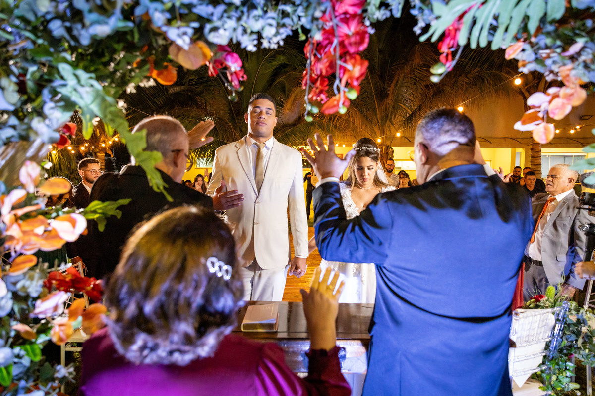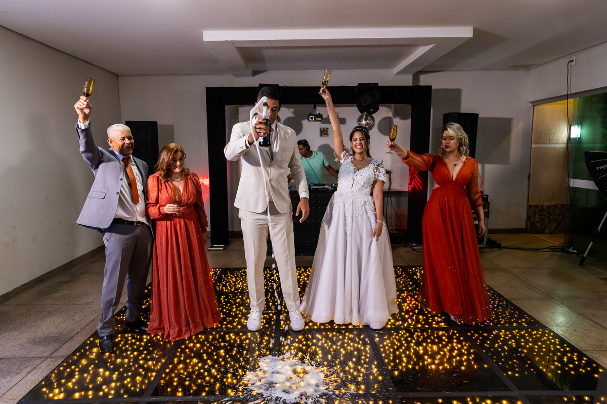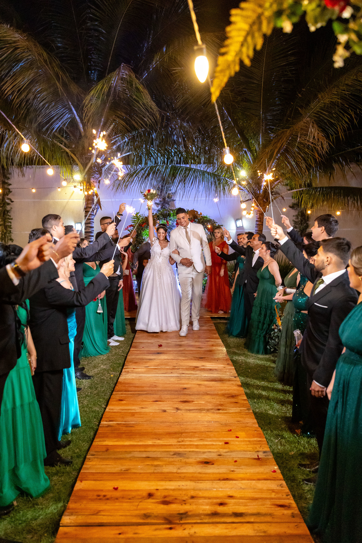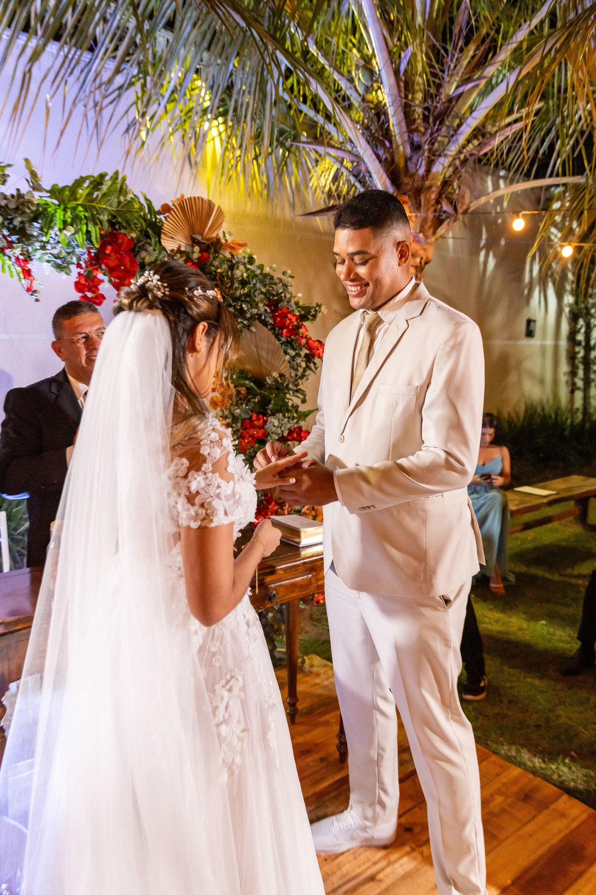 À noite, o cenário se transformou no palco perfeito para o "sim". A cerimônia aconteceu no belíssimo Espaço Colizeu, em Goiatuba, Goiás — um lugar que combinou perfeitamente com a energia do casal: elegante, acolhedor e repleto de luz. Sob um céu estrelado, cercados por familiares e amigos, eles celebraram o início de uma nova etapa com muita emoção, troca de olhares sinceros e votos que tocaram o coração.