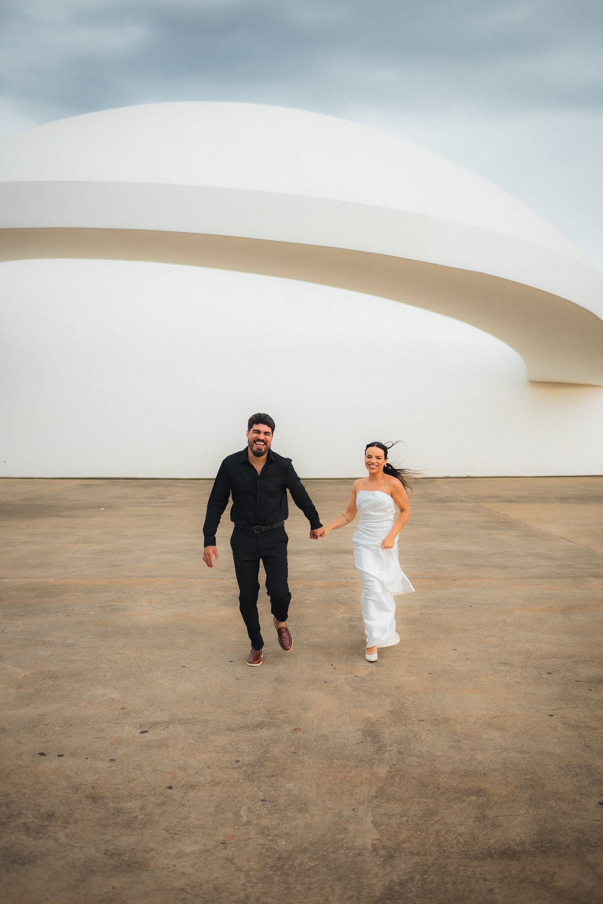 Em seguida, seguimos para o Plano Piloto, explorando alguns dos ícones mais marcantes da capital. A Catedral de Brasília trouxe imponência e espiritualidade ao ensaio, enquanto o Museu da República, com suas linhas puras e curvas modernas, reforçou a proposta de imagens limpas, elegantes e atemporais.