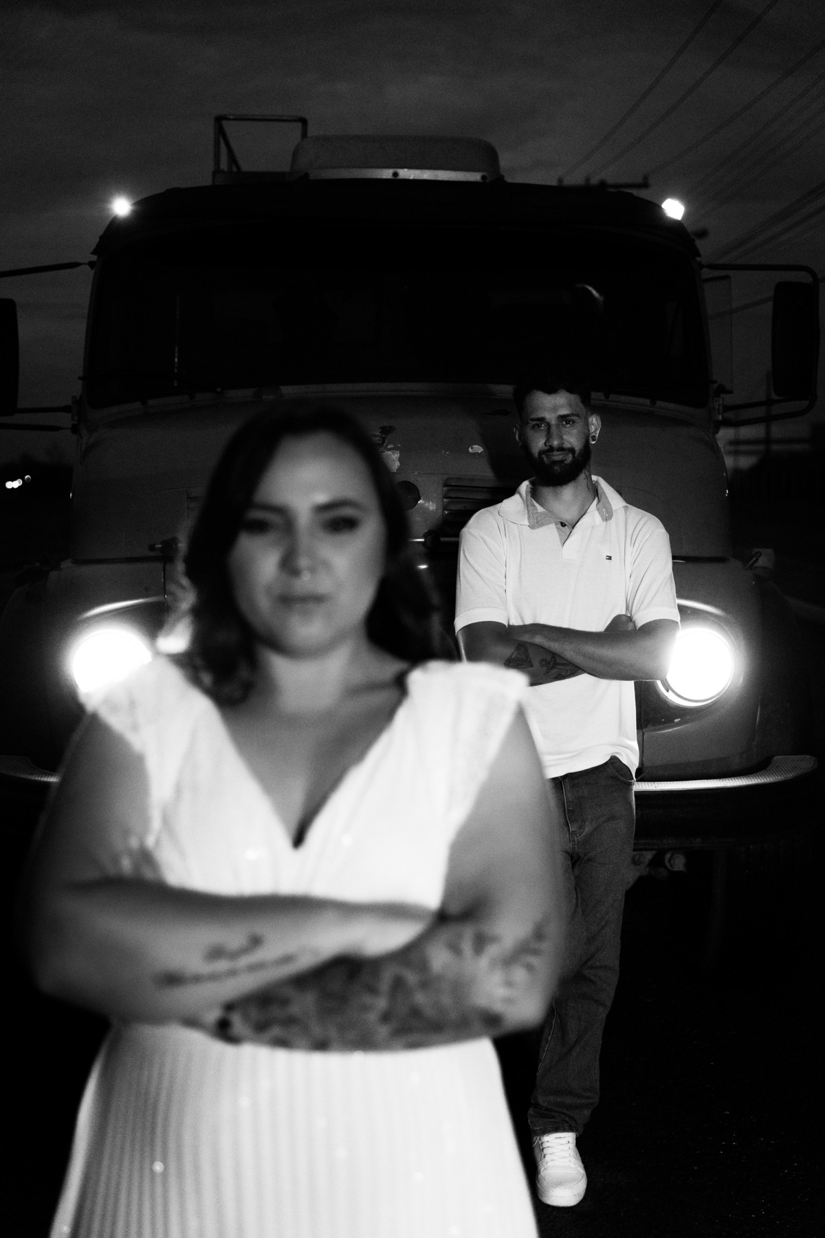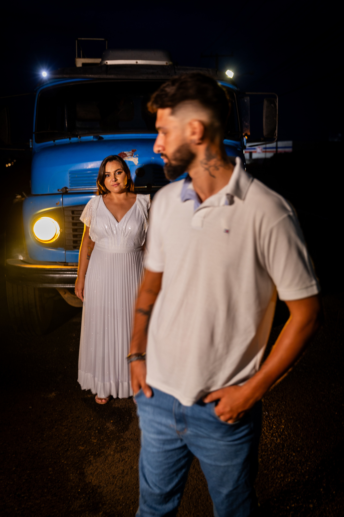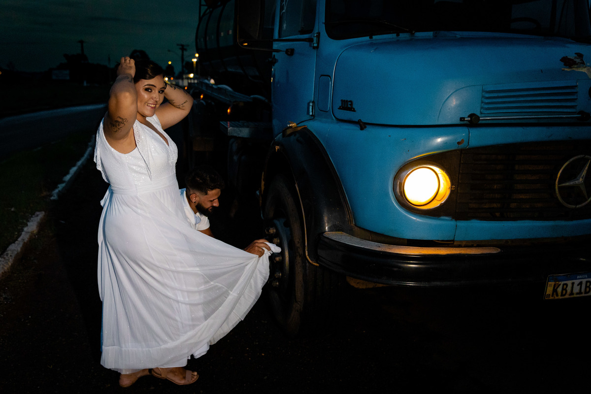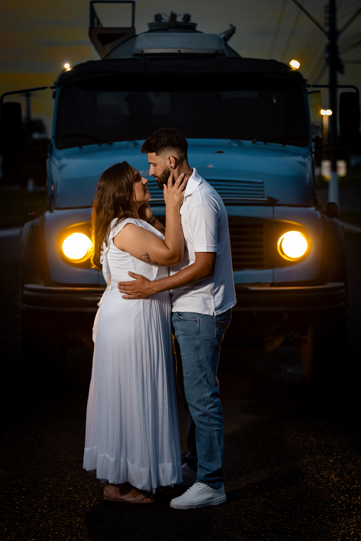 Para finalizar com aquele toque inusitado e cheio de identidade, Kátia e Luiz posaram ao lado de um caminhão de leite na rodovia — um detalhe que trouxe ainda mais autenticidade e história ao ensaio.