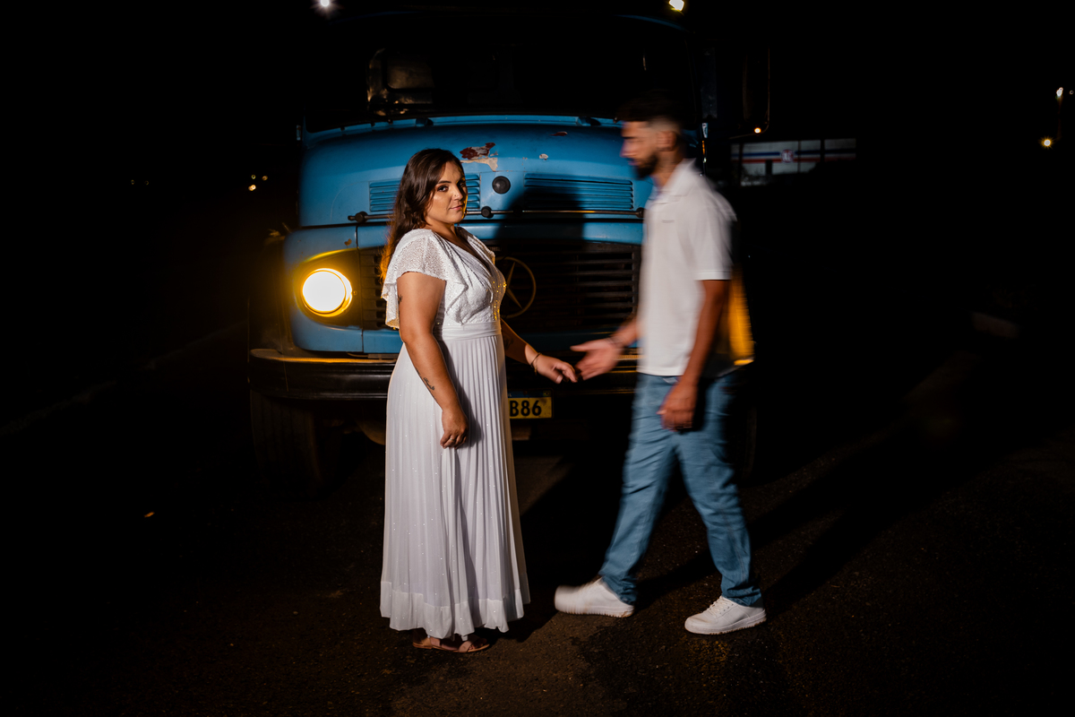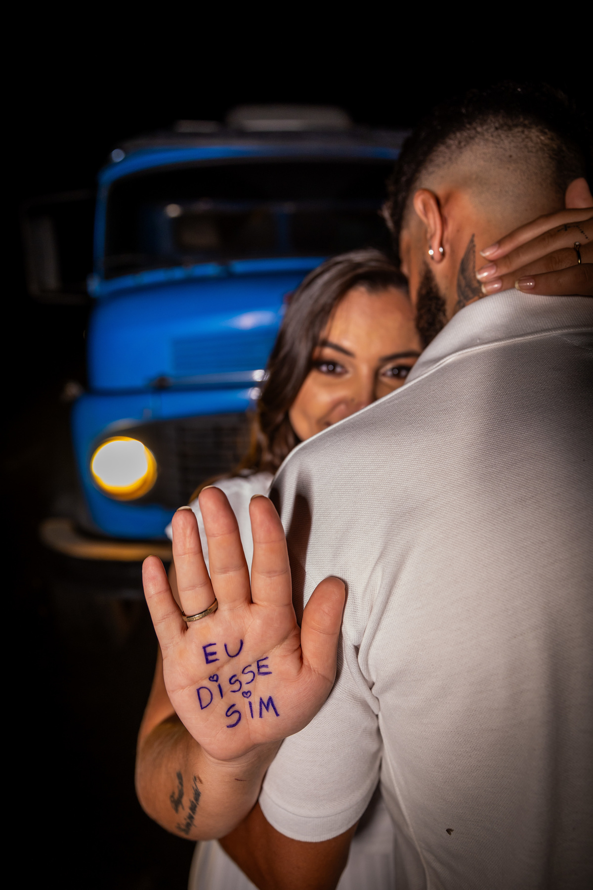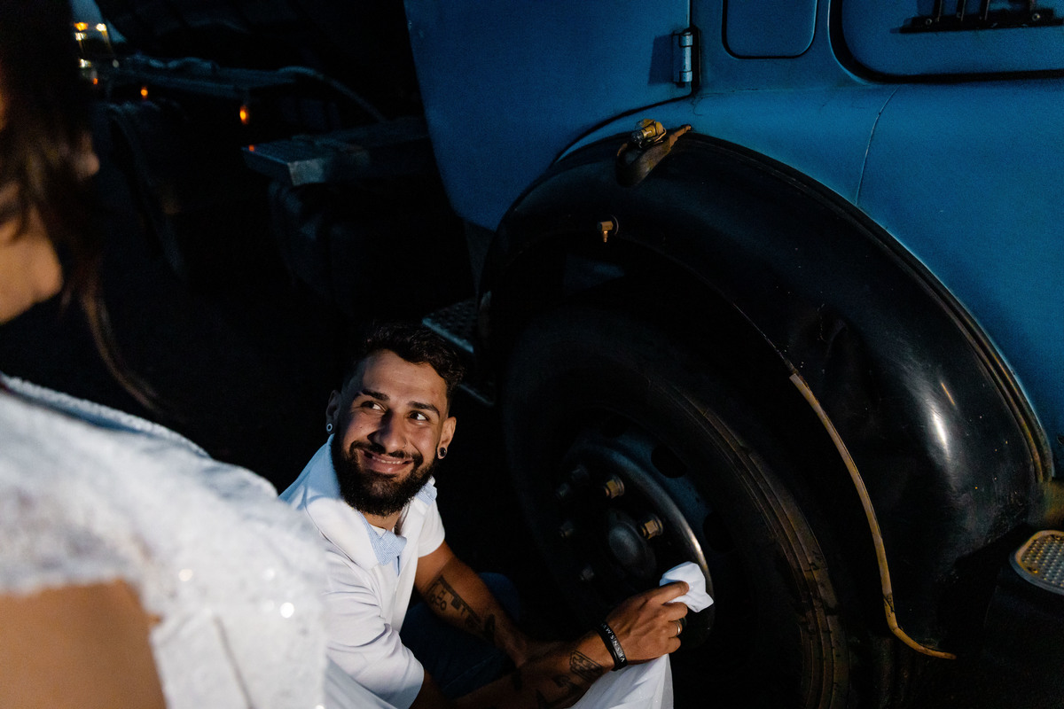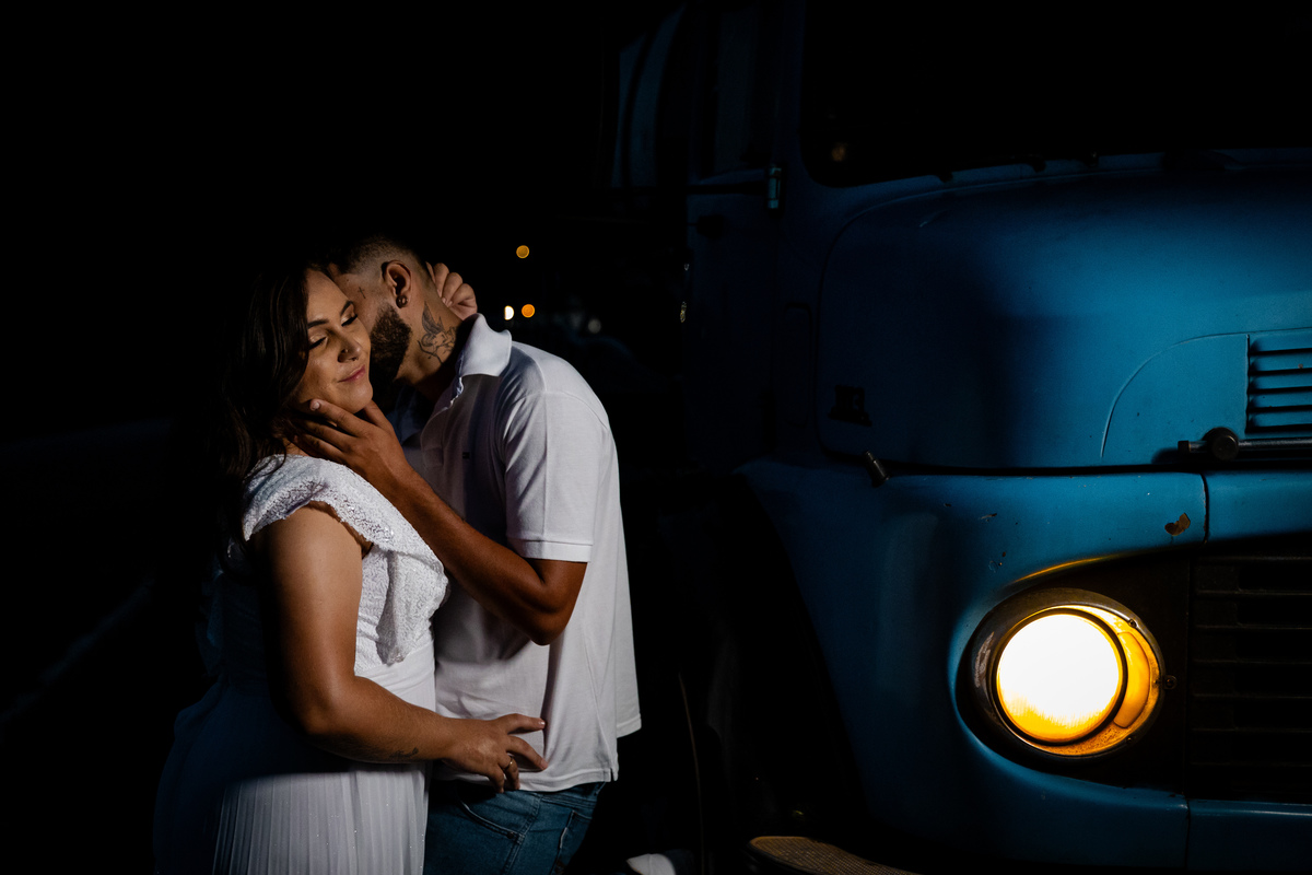 Para finalizar com aquele toque inusitado e cheio de identidade, Kátia e Luiz posaram ao lado de um caminhão de leite na rodovia — um detalhe que trouxe ainda mais autenticidade e história ao ensaio.